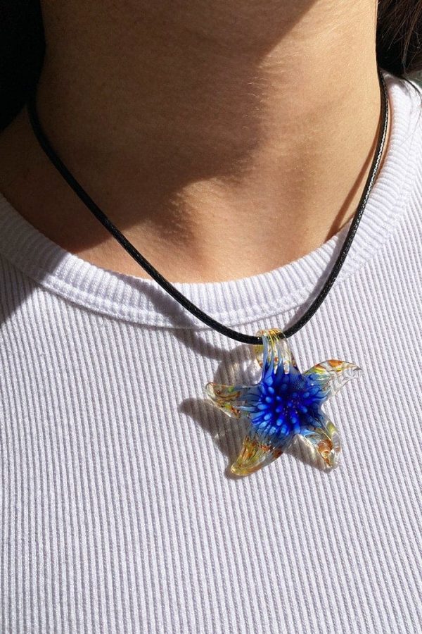 Collana con fiore, chiusura con moschettone, con lunghezza regolabile.