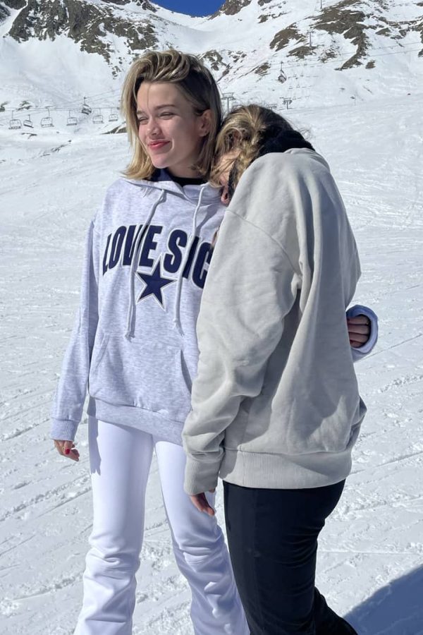 Felpa con ricamo Love Sick, con cappuccio, tasche frontali, maniche lunghe, lunghezza lunga, vestibilità comoda.