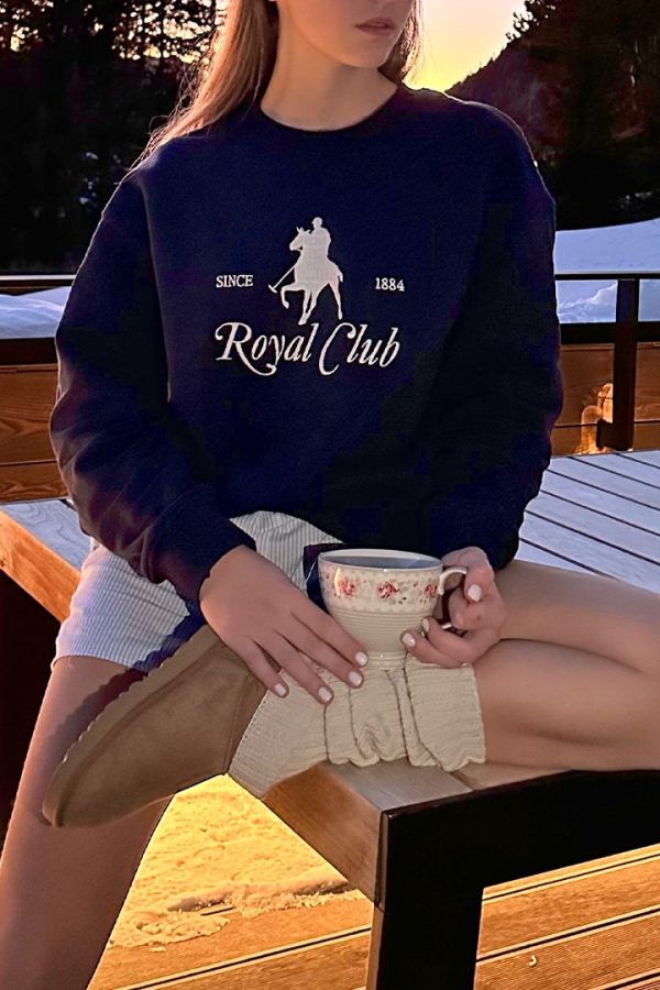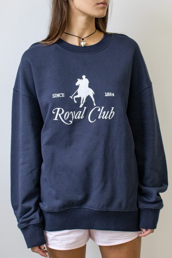 Felpa con ricamo Royal club, girocollo, maniche lunghe, lunghezza lunga, vestibilità comoda.