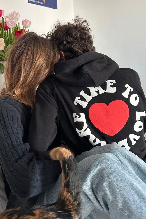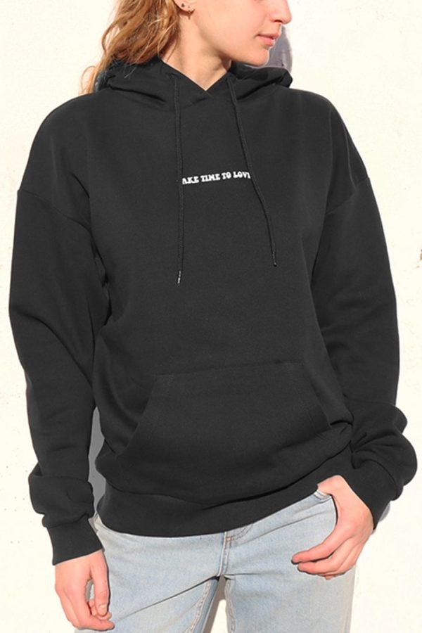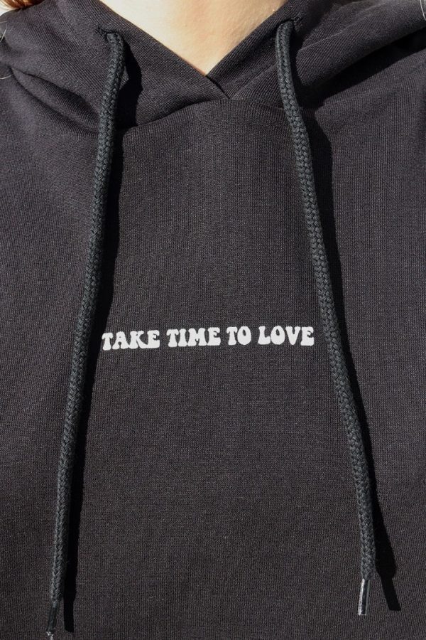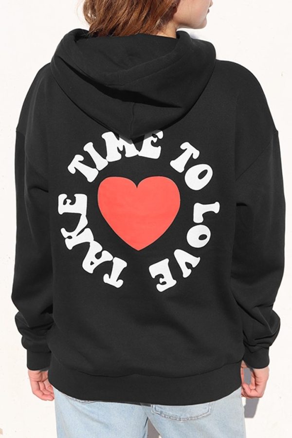 Felpa con stampa take time to love, con cappuccio, tasche frontali, maniche lunghe, lunghezza lunga, vestibilità comoda.