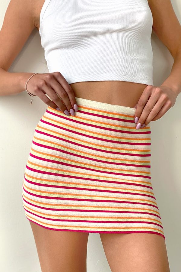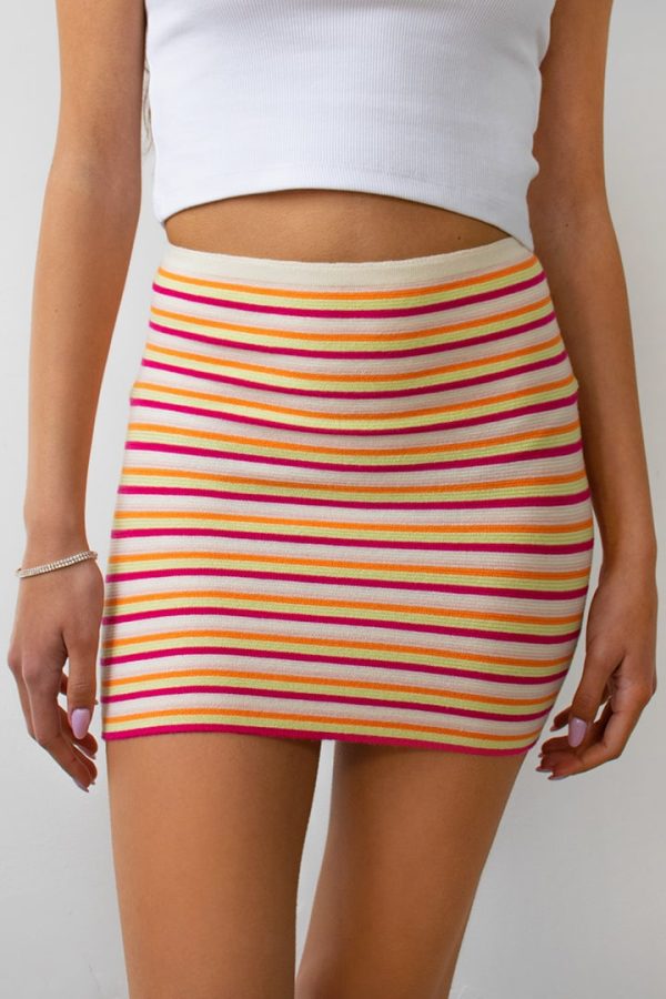 Gonna a righe, lunghezza corta, vestibilità slim.