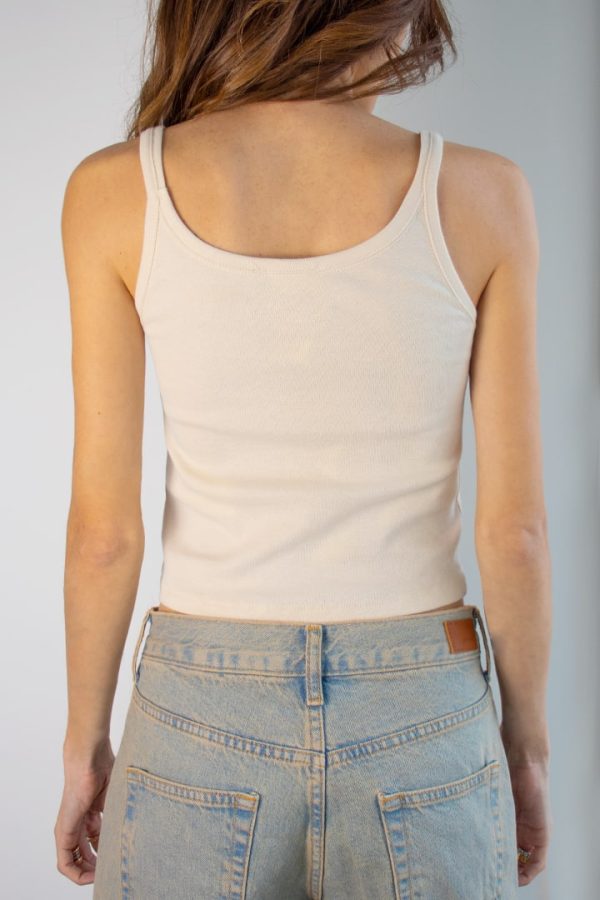 Tank top con stampa Delicious, smanicato, lunghezza crop, vestibilità slim.