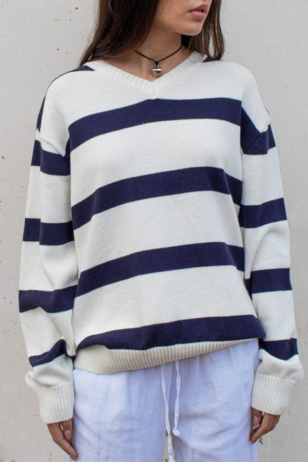 Maglione scollo a V, maniche lunghe, lunghezza regolare, vestibilità comoda.