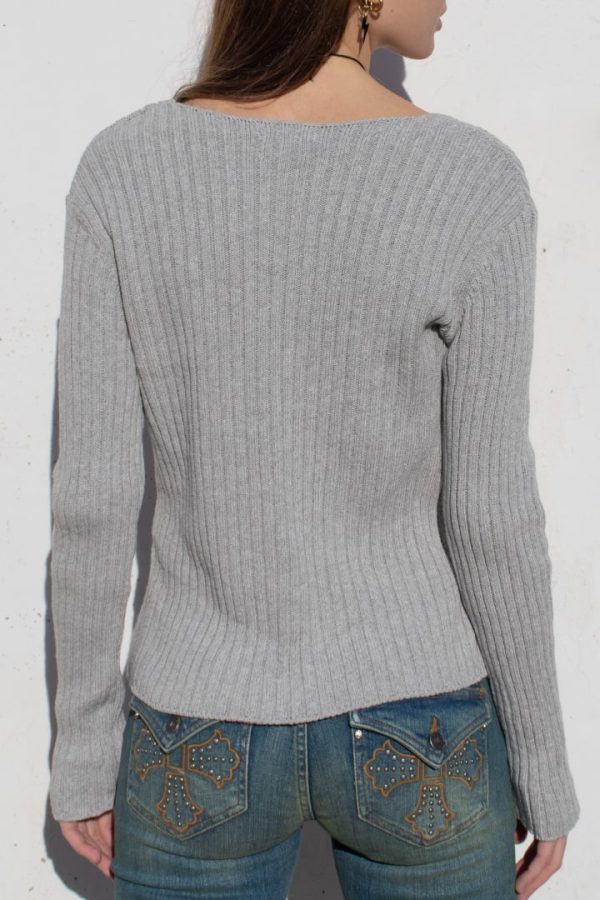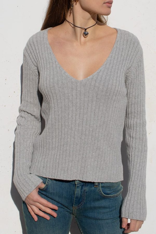 Maglione scollo a V, maniche lunghe, a costa larga, lunghezza regolare, vestibilità slim.