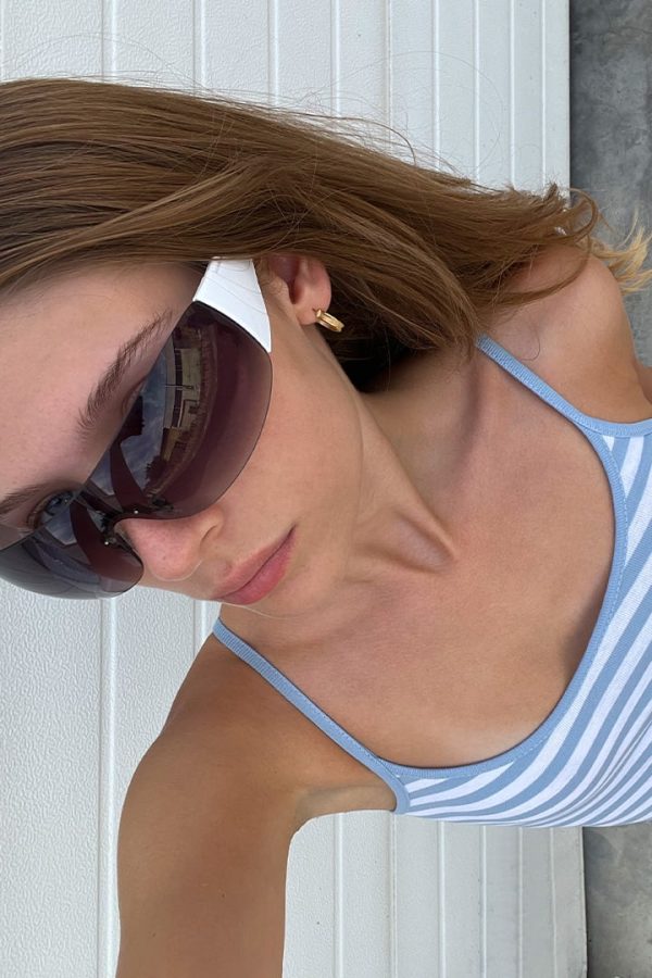 Occhiali da sole, a mascherina, montatura in plastica, stanghette spesse con estremità ricurve.