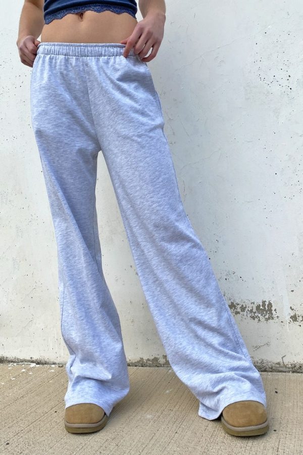 Pantaloni tuta, vita elasticizzata, modello a palazzo, lunghezza lunga, vestibilità comoda.