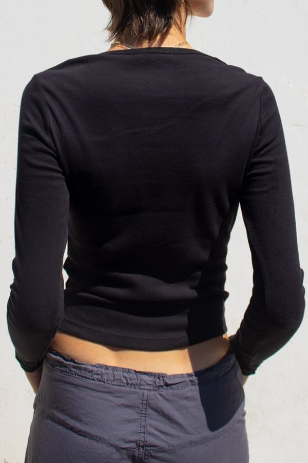 T-shirt scollo a V, maniche lunghe, lunghezza regolare, vestibilità comoda.