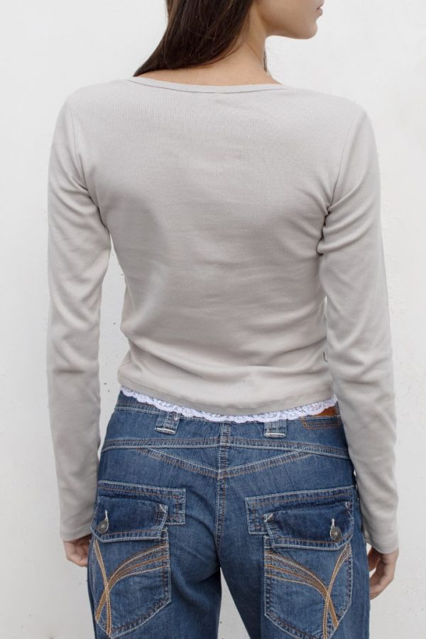 T-shirt chester, con pizzo, scollo rotondo, maniche lunghe, lunghezza regolare, vestibilità comoda.