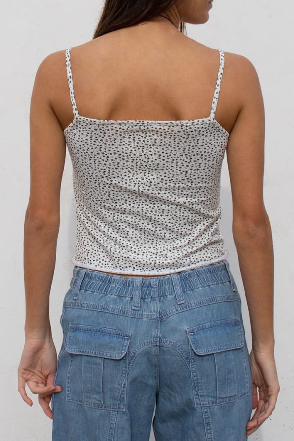 Tank top, scollo con pizzo e bottoncini, smanicato, lunghezza regolare, vestibilità slim.