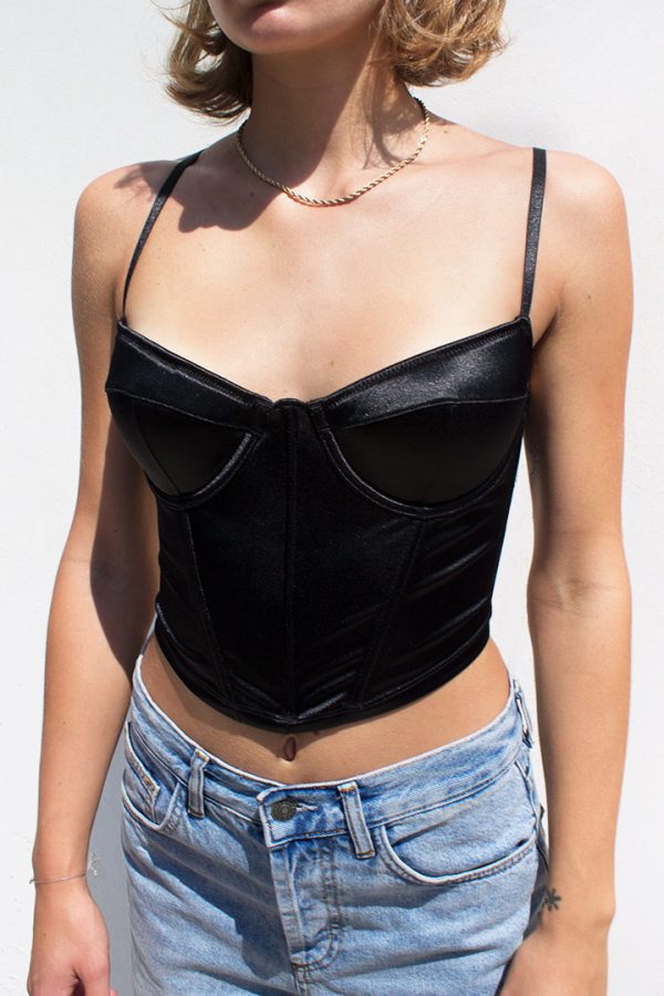 Top corpetto, con coppe, con bretelline, lunghezza crop, vestibilità aderente.