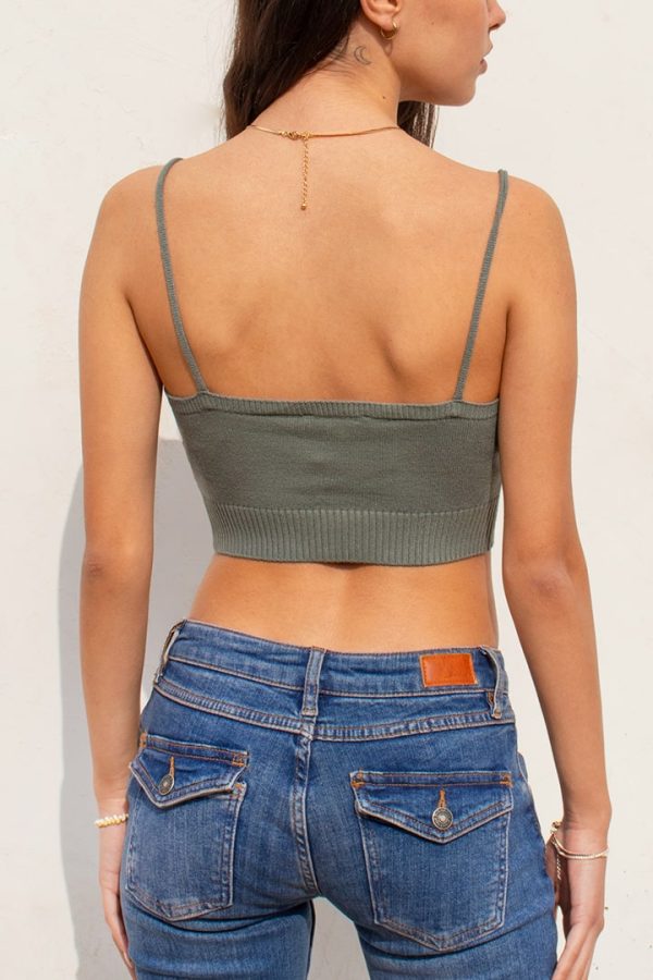 Top scollo a V, con bretelline, lunghezza crop, vestibilità aderente