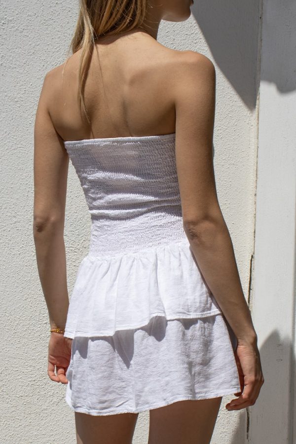 Vestito fili elastici, smanicato, con doppia balza, lunghezza corta, vestibilità aderente.