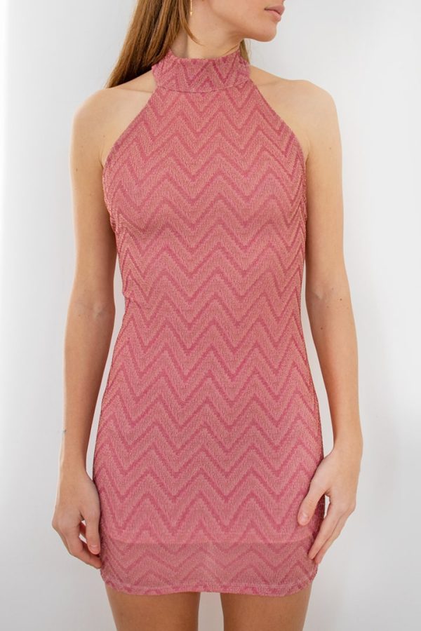Vestito lupetto, schiena scoperta, tessuto in lurex, lunghezza corta, vestibilità slim.
