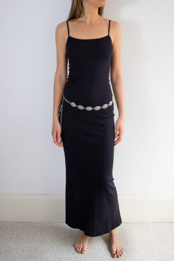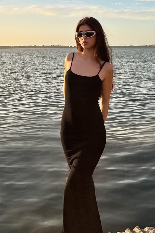 Vestito slim, scollo dritto, con bretelline regolabili, lunghezza lunga, vestibilità slim.